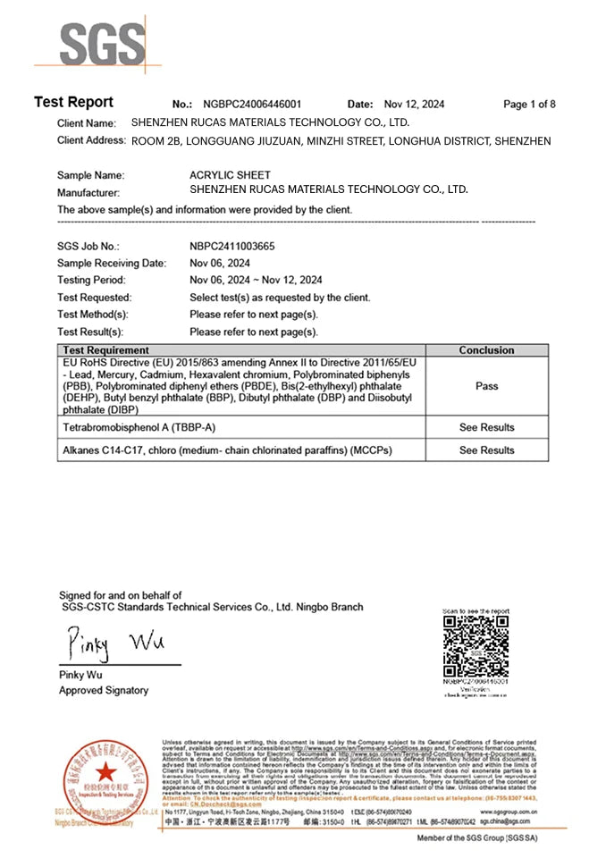 Rucas was founded in Shenzhen in 2015 and now has offices and warehouses in Shenzhen, Jiangsu, Shanghai, Yancheng, Changzhou, and overseas. Our mission is to bring environmentally friendly, future-oriented acrylic sheet products to the world, and we are committed to providing cutting-edge products and customized services to every corporate client.